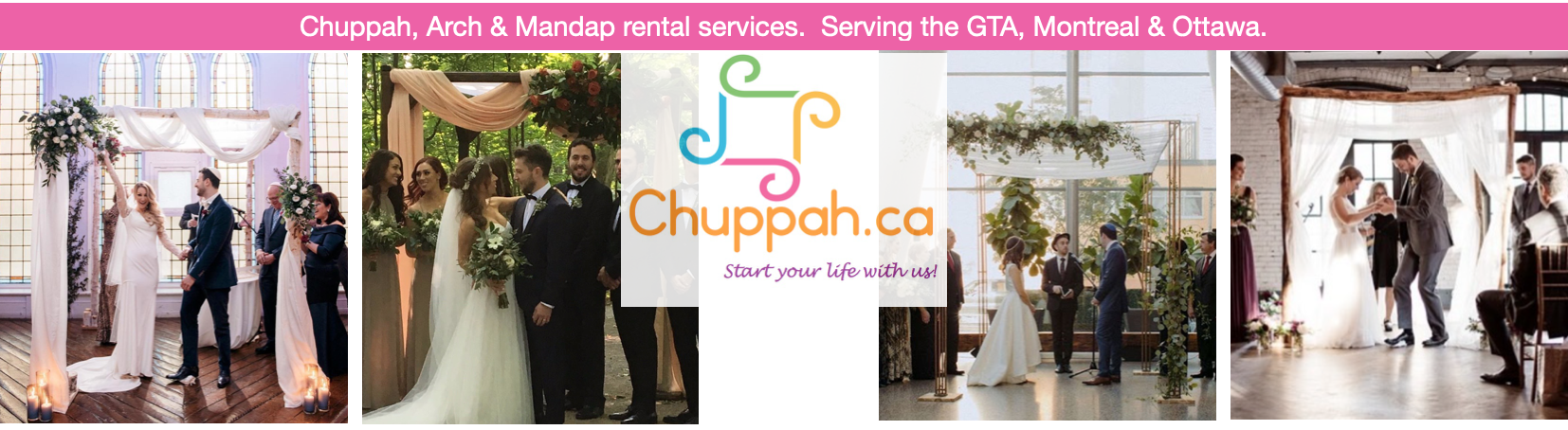 Couples of all faiths and orientations rent Chuppahs to dress up their indoor ceremony space, add a little shade to an outdoor space or just because they like the symbolism.